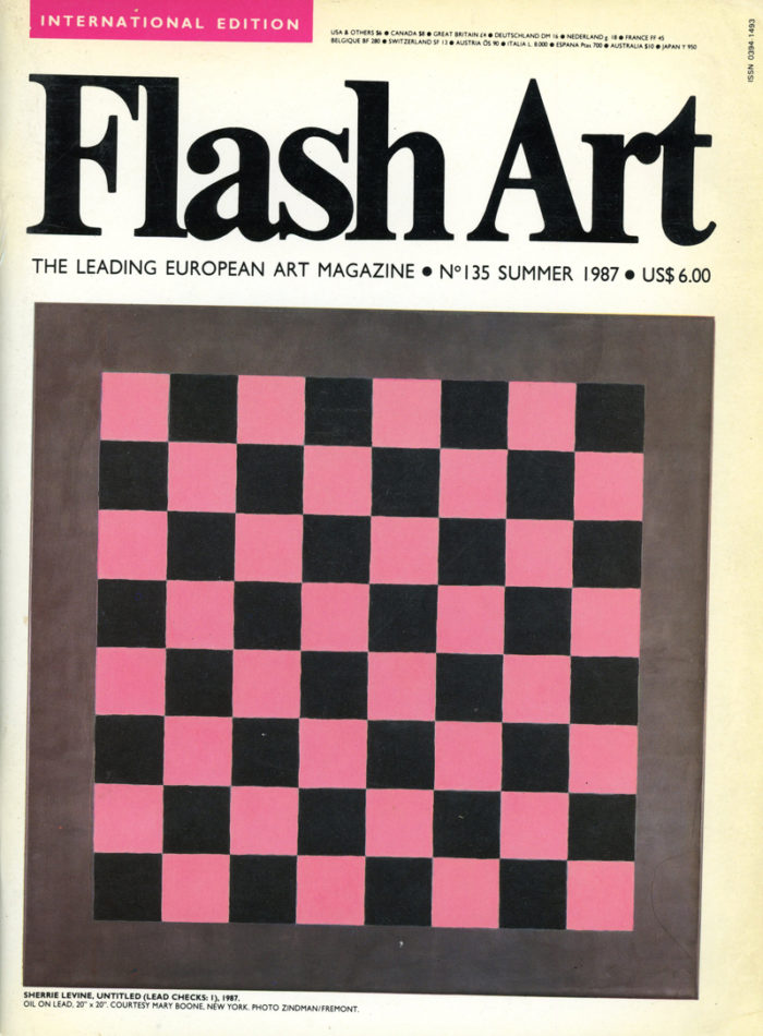 Flash Art #135 with Sherrie Levine cover and article, also includes articles on John Baldessari and a Special Supplement by Enzo Cucchi, Summer 1987