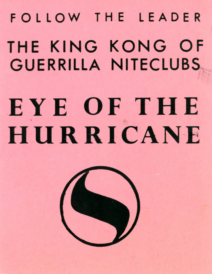 Front reads: “Follow the Leader, The King Kong of Guerrilla Niteclubs, Eye of the Hurricane“. Back reads: The B.A. D. Museum, John Zorn-Jmaes White Band and Word plus executive D.J. Fab Five Freddy”.