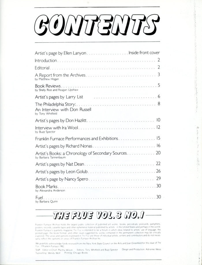 Franklin Furnace, FLUE, Volume 3 Number 1, Magazine, Winter 1983. Special issue on artists’ books with Leon Golub, Nancy Spero, among others.