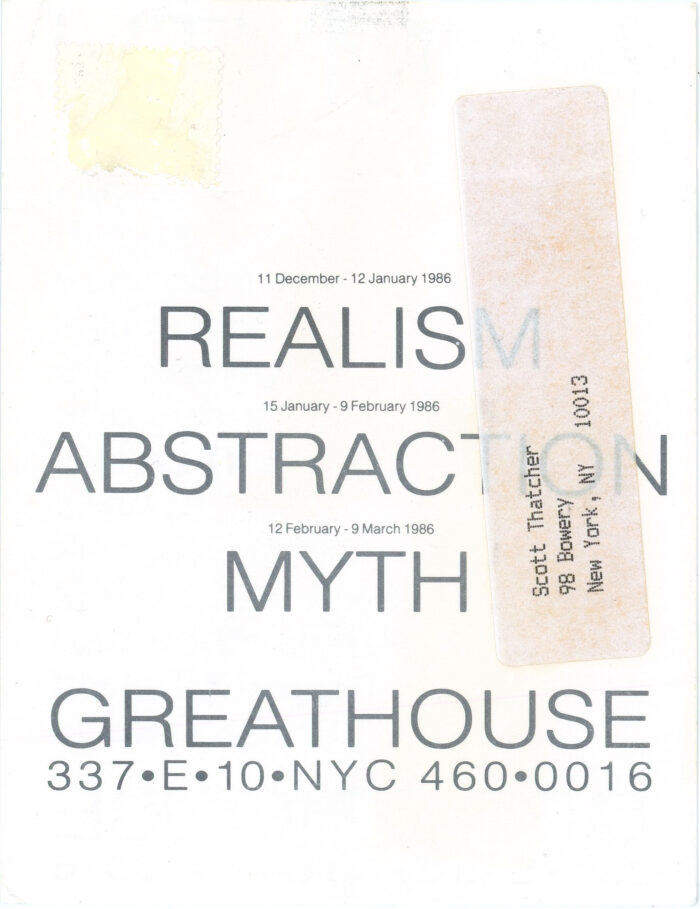 Myth, Group Show, Greathouse Gallery, Card, 1986