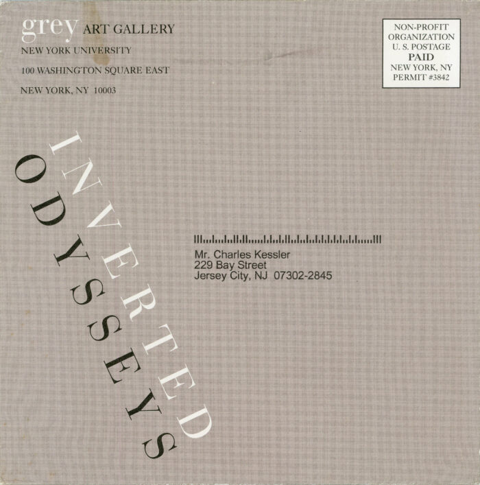 Foldout card with booklet for “Inverted Odysseys, a group exhibition of photographers Cindy Sherman, Claude Cahun, and Maya Deren at the Grey Art Gallery at NYU. November 16, 1999 – January 29, 2000.