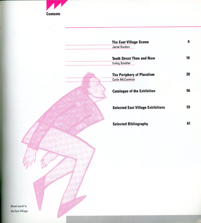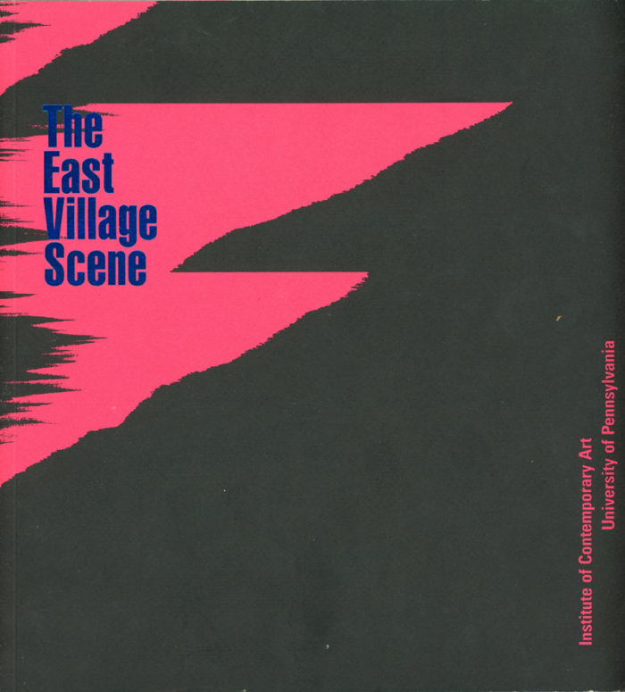 64-page catalogue produced on the occasion of the exhibition “The East Village Scene” at the Institute of Contemporary Art at the University of Pennsylvania, October 12 – December 2, 1984. Includes an essay by Carlo McCormick.