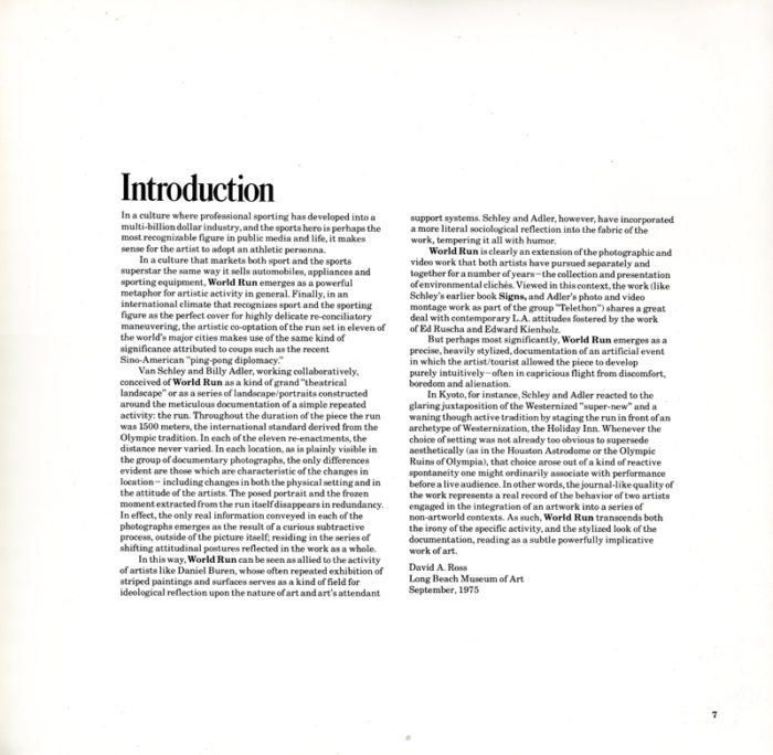 Van Schley & Billy Adler, World Run, Book, Long Beach Museum of Art, 1976