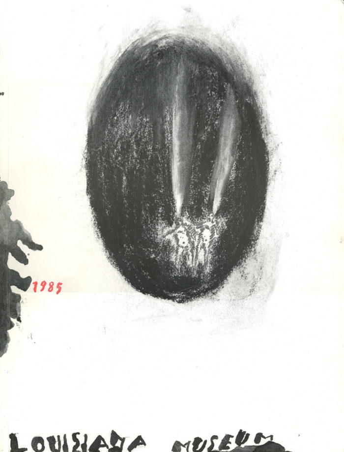 A set of three catalogues in a slip case produced on the occasion of an exhibition by Enzo Cucchi at the Louisiana Museum, April 1985.