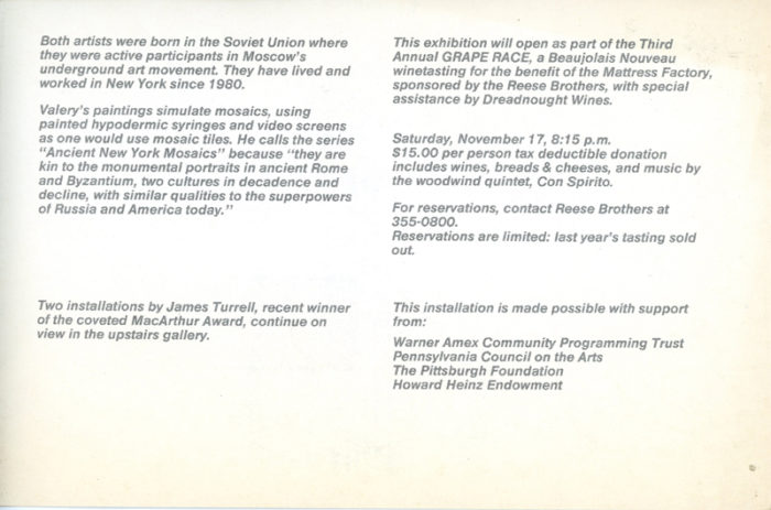 Mattress Factory, Valerie Gerlovin and Rimma Gerlovin, Ancient New York Mosaics, Folded Card, 1984
