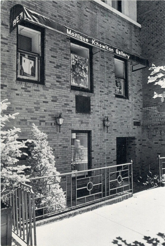 Announcement card for a group exhibition of new work by gallery artists at Monique Knowlton Gallery, September 7 – October 1, 1977.