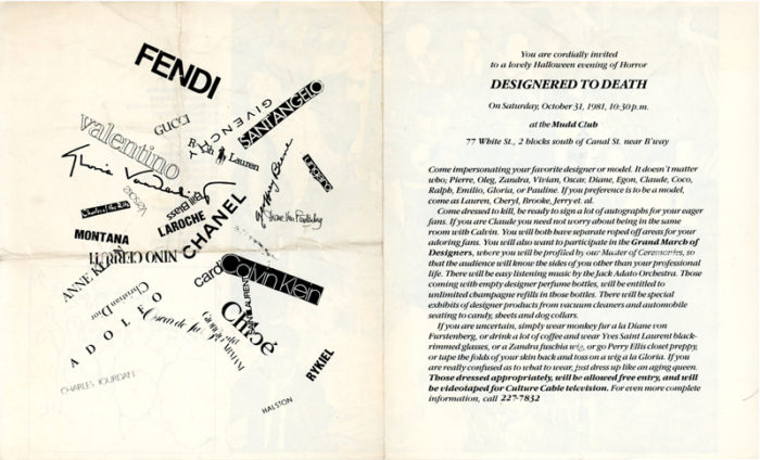 Mudd Club, Designered to Death, Folded Card, 1981