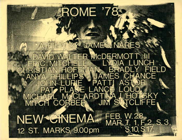 New Cinema, James Nares, Rome ’78, Flyer, 1979. One of the few surviving posters from the short lived New Cinema