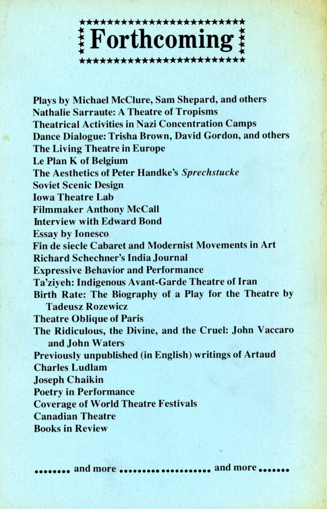 Performing Arts Journal, Volume 1 Number 1, Magazine, Spring 1976
