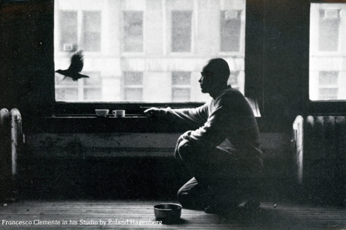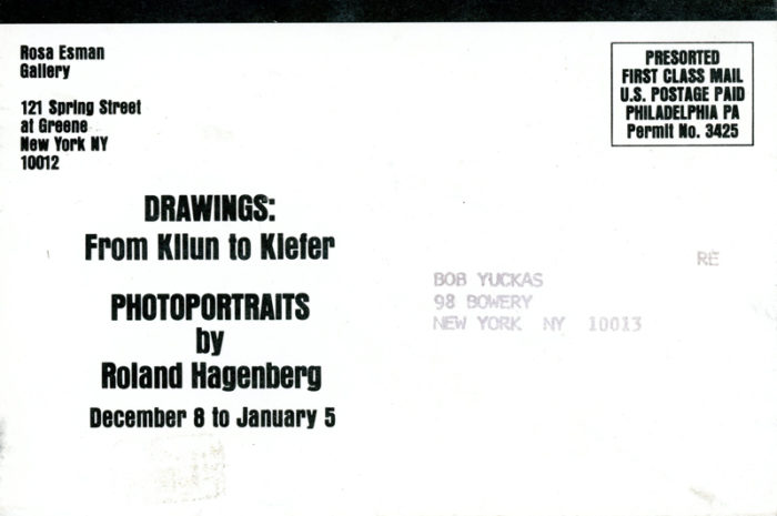 Card for exhibition at Rosa Esman Gallery for Roland Hagenberg’s Photoportraits. Cover photo of Francesco Clemente in his studio. Dec 8 – Jan 5, 1984.