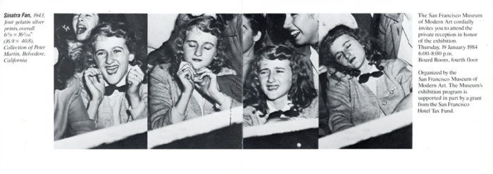 San Francisco MoMA, Weegee, Folded Card, 1984, with photo titled “Sinatra Fan,” 1943.