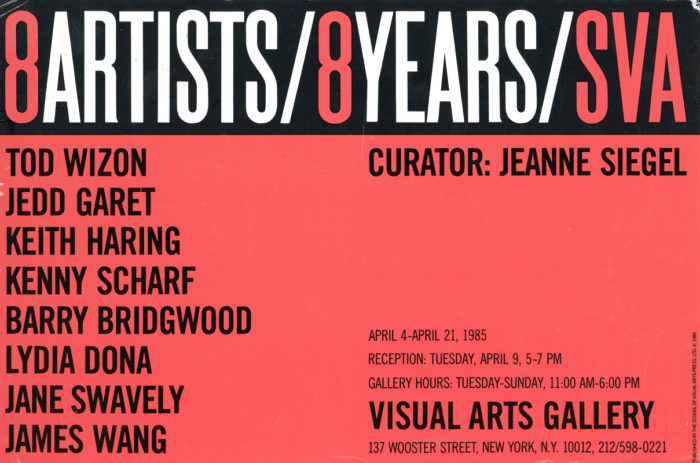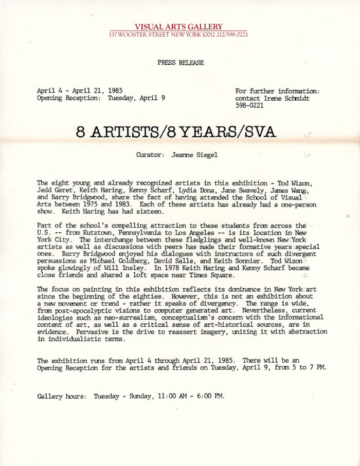 School of Visual Arts Gallery, Keith Haring, Kenny Scharf, among others, 8 Artists/8 Years, Catalogue – Press Release – Card, 1985.