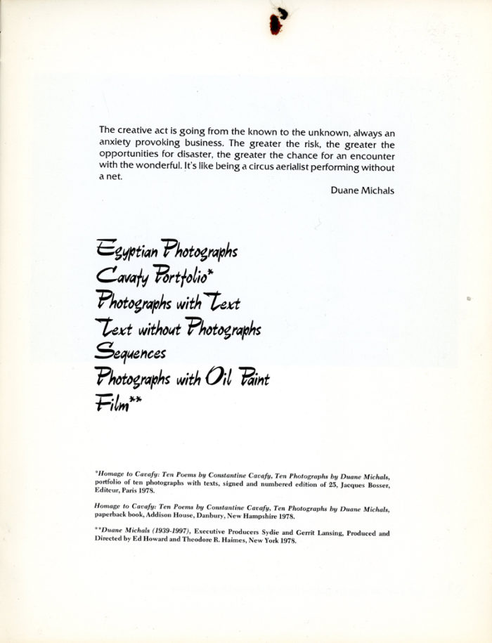 Sidney Janis Gallery, Duane Michals, Catalogue and Press Release, 1978.