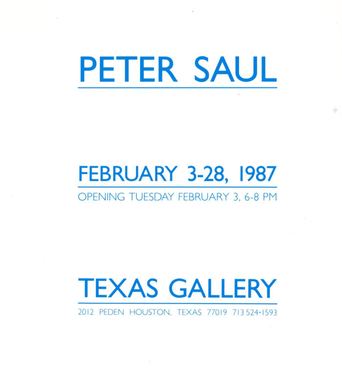 Texas Gallery, Peter Saul, Folded Card, Feb 3 – 28, 1987.