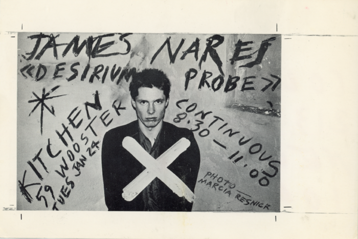 James Nares, Photo by Marcia Resnick, Desirium Probe, Card, The Kitchen, 1978