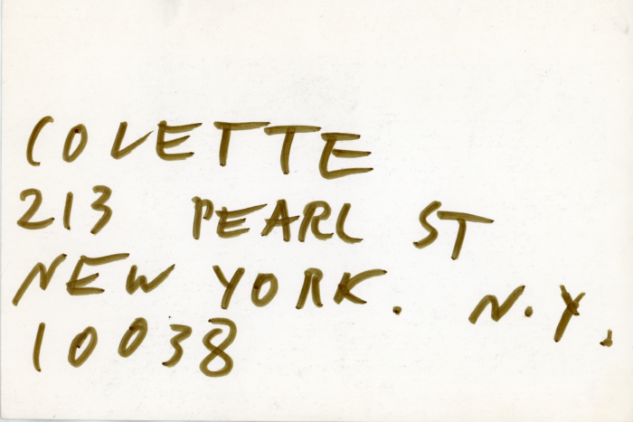 The Kitchen, James Nares, Photo by Marcia Resnick, Desirium Probe, Card, 1978.