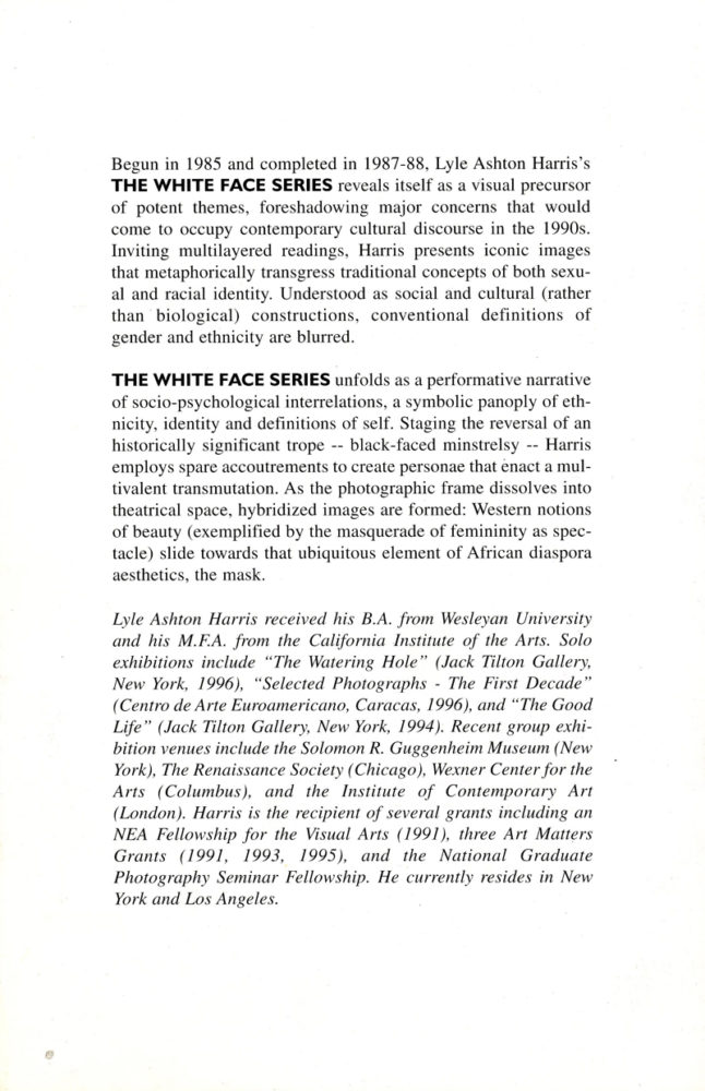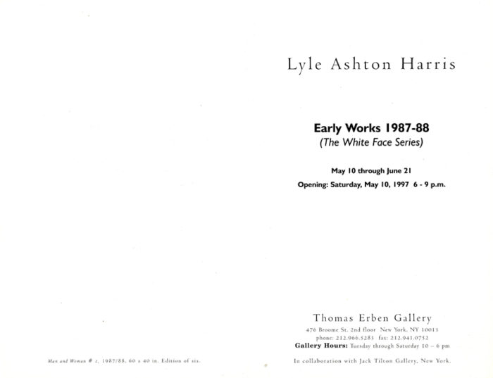 Lyle Ashton Harris, Thomas Erben Gallery, The White Face Series, Folded Card, 1997