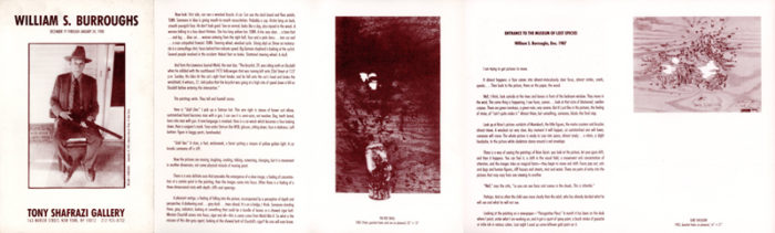 Folded card for an exhibition by William S. Burroughs at Tony Shafrazi Gallery, December 19, 1987 – January 24, 1988.