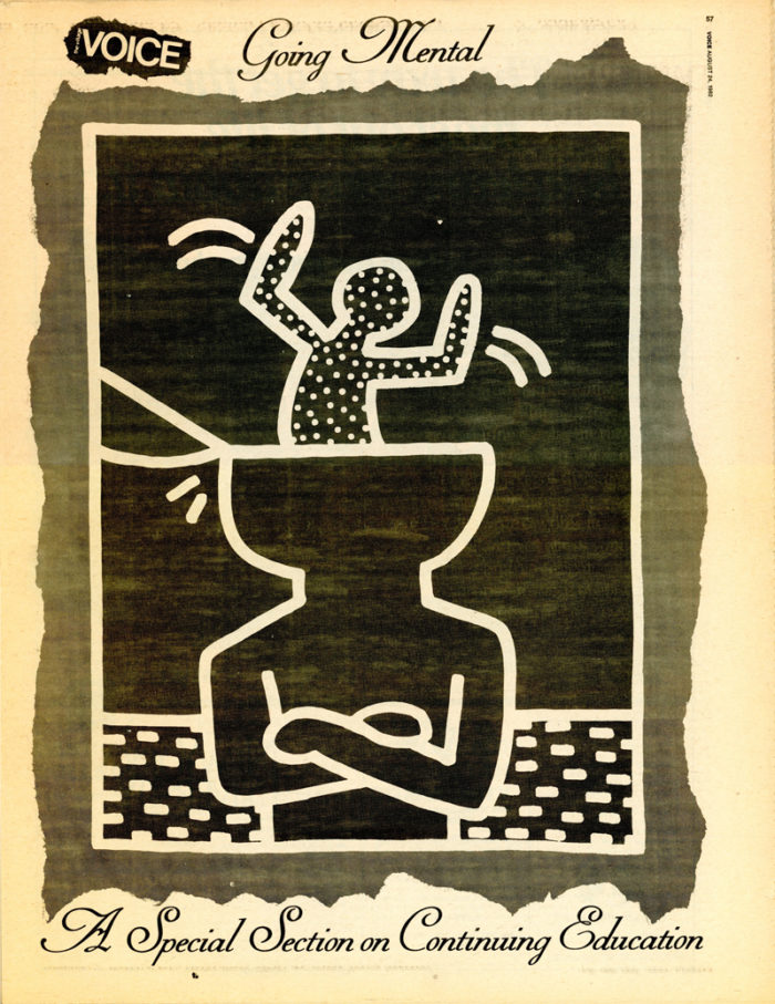 August 1982 issue of Village Voice: Cover + the complete 23 page special section on education featuring 10 illustrations by Keith Haring.