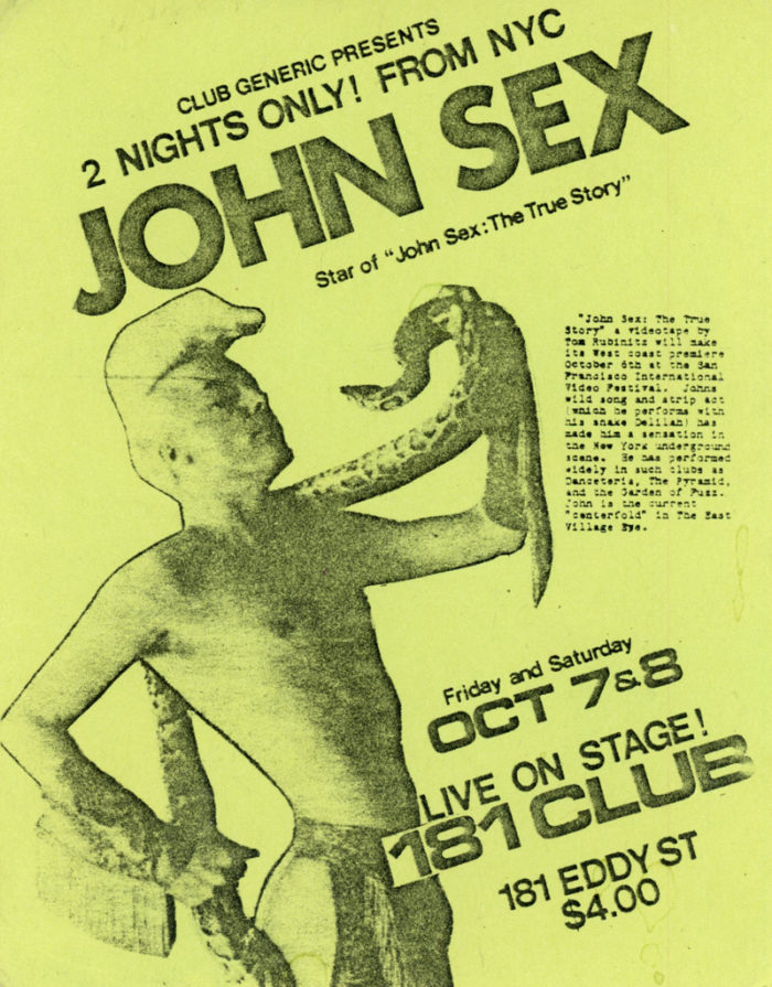 John Sex: Two Nights Only, 181 Club, 1983