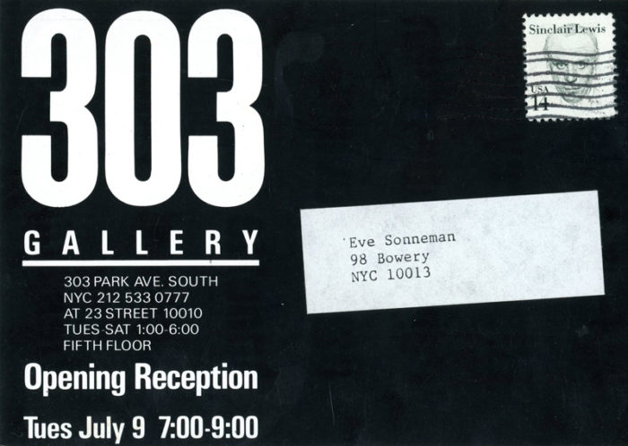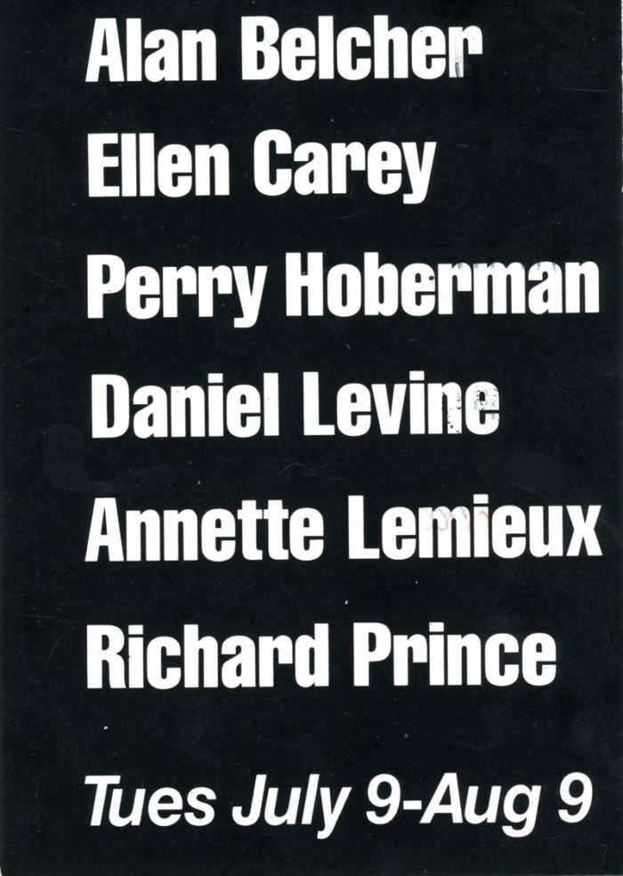 Group Show with Richard Prince, Annette Lemieux, Alan Belcher and others, 303 Gallery, Card, 1985
