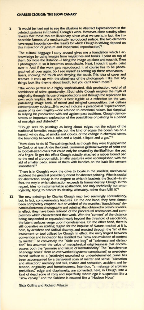 American Fine Arts, Collins & Milazzo, Modern Sleep, Gallery Handout, 1986
