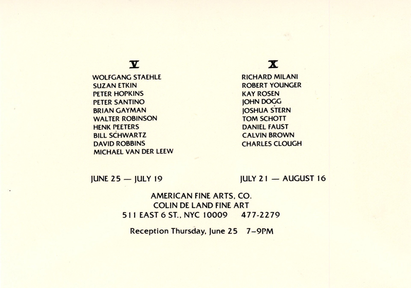American Fine Arts Co., John Dogg, Calvin Brown, Peter Hopkins, Tom Schott, Card, 1986