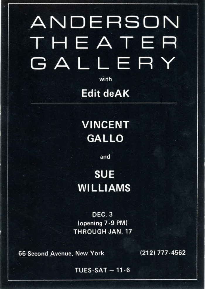 Anderson Theater Gallery, Edit DeAk, Vincent Gallo, Sue Williams, Card, ND