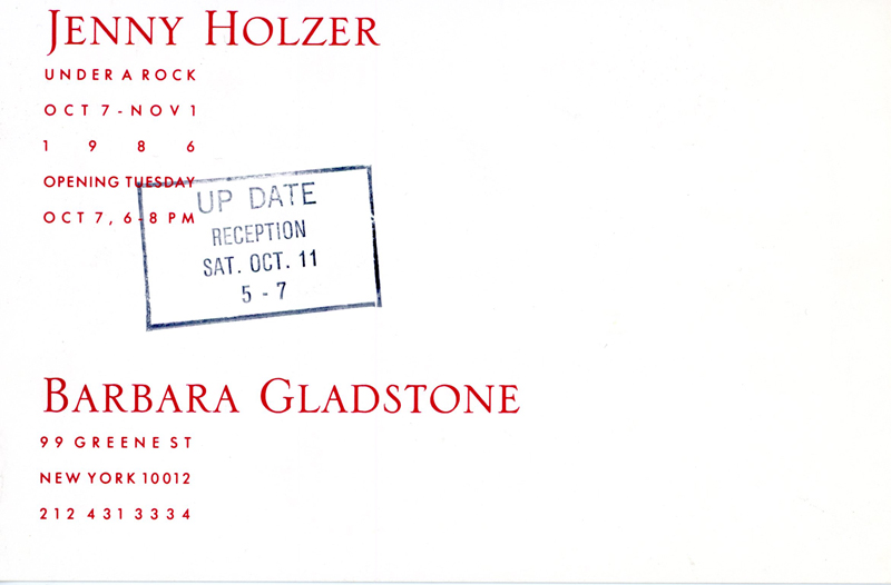 Jenny Holzer, Under A Rock, Barbara Gladstone Gallery, Card, 1986