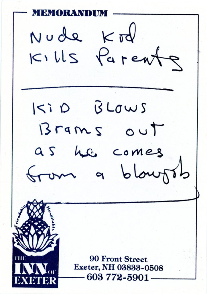 “The Good, The Bad & The Ugly: Knowledge and Violence in Recent American Art,” Group Show with Cady Noland, Andres Serrano, Larry Clark, Two-Fold Card, Ezra and Cecile Zilkha Gallery (Wesleyan University), 1991