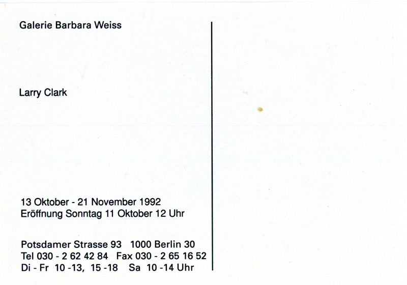 Larry Clark, Card, Barbara Weiss Gallery (Germany), 1992