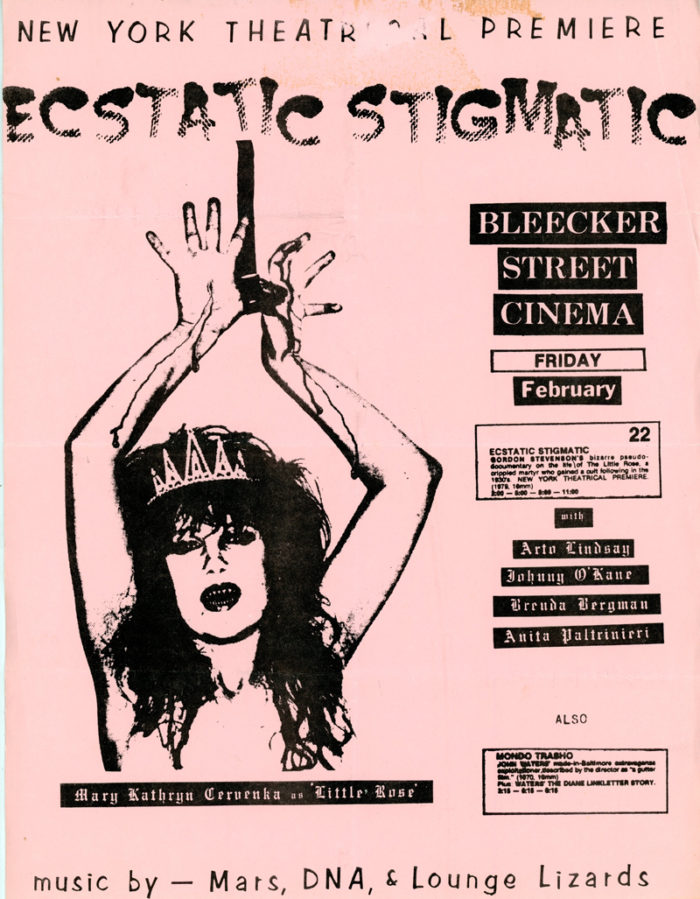 Bleecker Street Cinema, Ecstatic Stigmatic, Gordon Stevenson, Mary Kathryn Cervenka, Arto Lindsay, Flyer, c. 1980