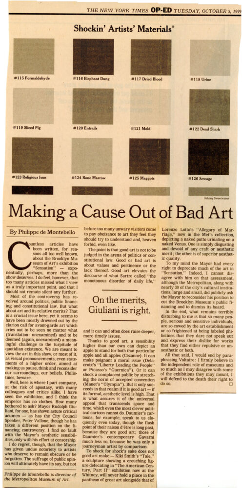 Philippe De Montebello clipping size: 6.5 x 13.5 inches.