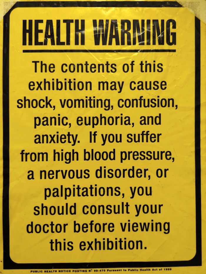 Brooklyn Museum of Art, Sensation Exhibition, “Health Warning” Signage, Brochure, Information Sheet, Ticket & Newspaper Clippings, 1999