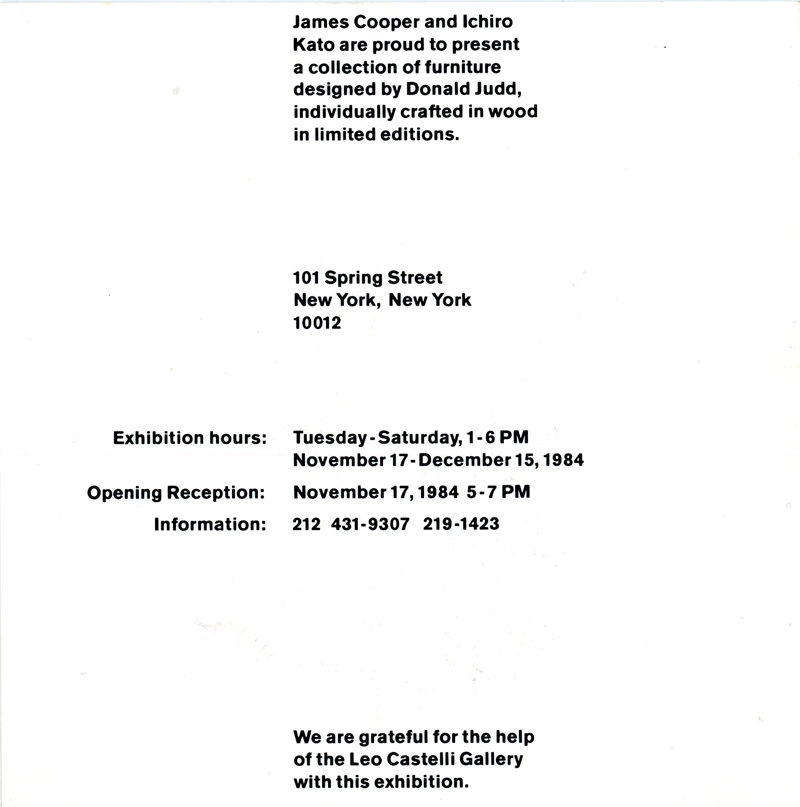 Donald Judd, Furniture, Two Fold Card, Cooper/Kato, 1984