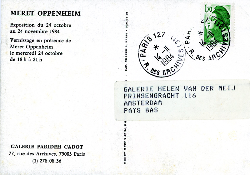 Meret Oppenheim, Farideh Cadot Gallery (France), Card, 1984