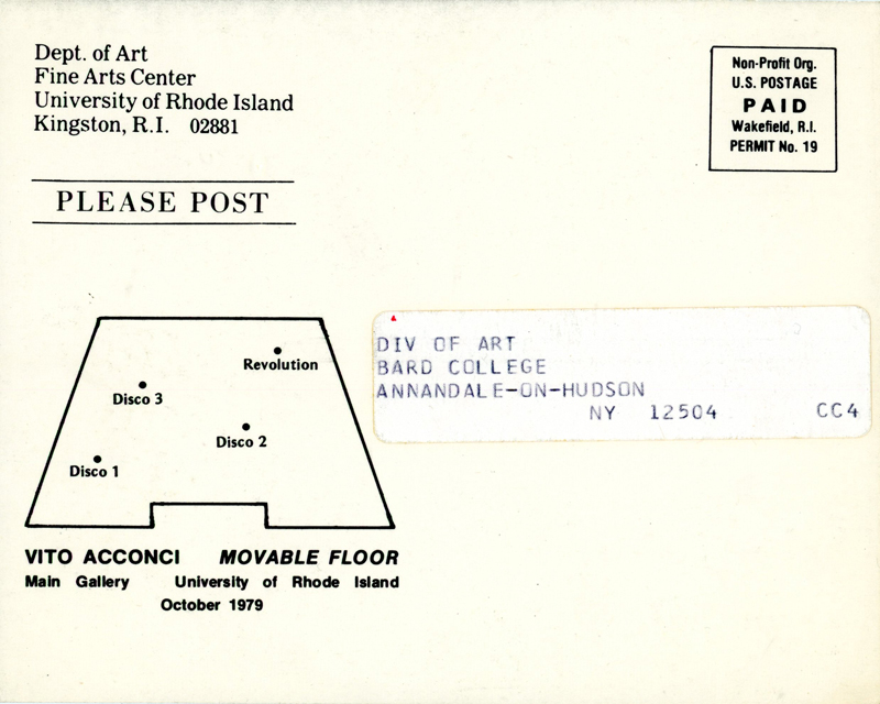 Vito Acconci, Movable Floor, Card, Fine Arts Center (Rhode Island), 1979