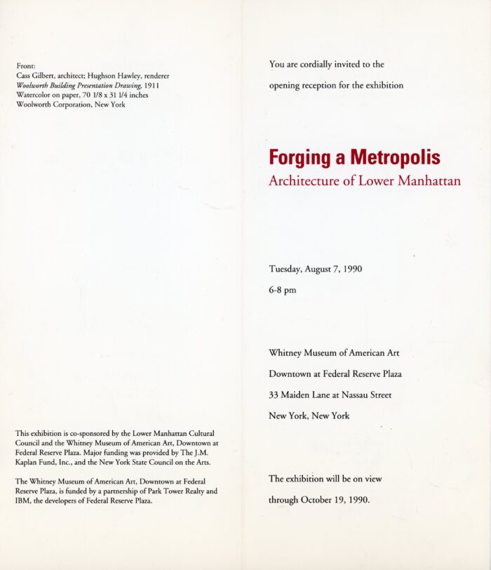 Forging a Metropolis: Architecture of Lower Manhattan, Whitney Museum, Folded Card, 1990