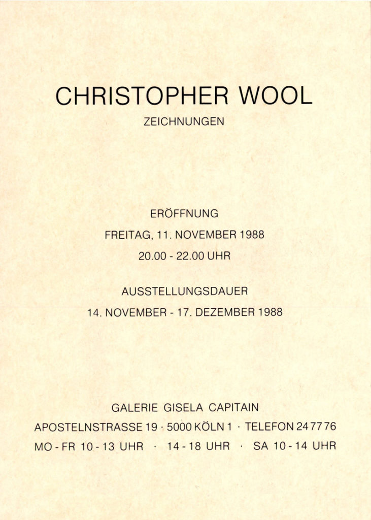 Gisela Capitain Gallery, Christopher Wool, Card, 1988