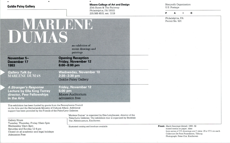 Marlene Dumas, Black Drawings (1991-92), Card, Goldie Paley Gallery (Pennsylvania), 1993