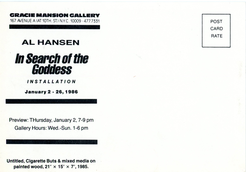 Gracie Mansion Gallery, Al Hansen, In Search of Goodness, Card, 1986