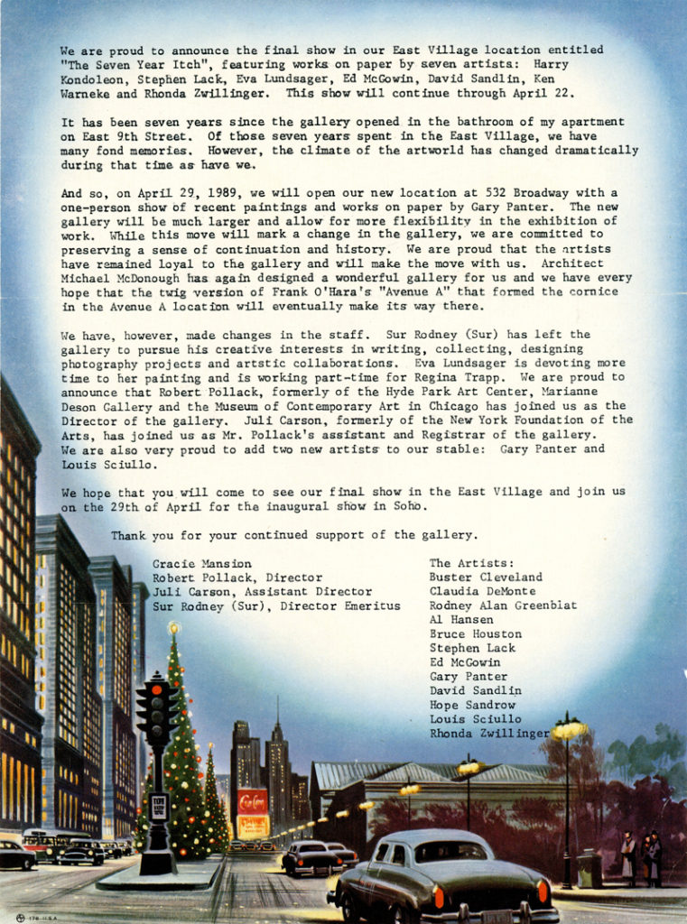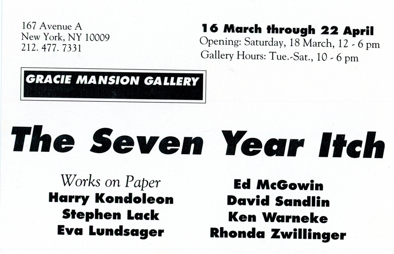 Gracie Mansion Gallery, The Seven Year Itch, Final Show at East Village Location, Stephen Lack, Rhonda Zwillinger, Press Release and Card, 1989