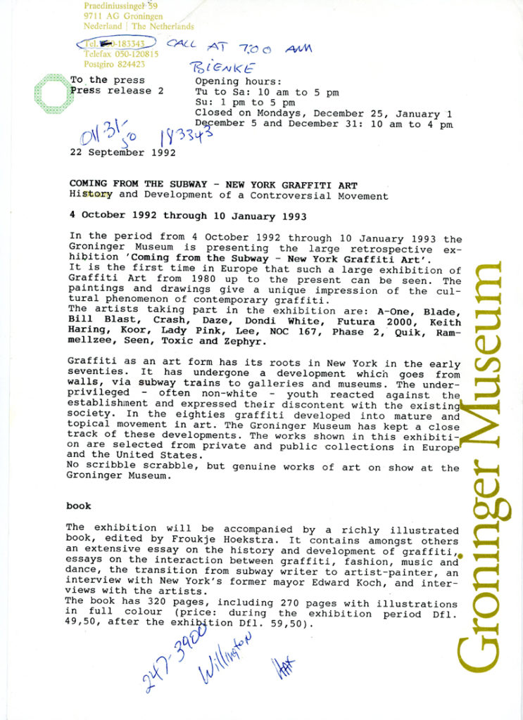 Groninger Museum, BLADE, Sky’s the Limit, Signed by Quik, Brochure, 1993