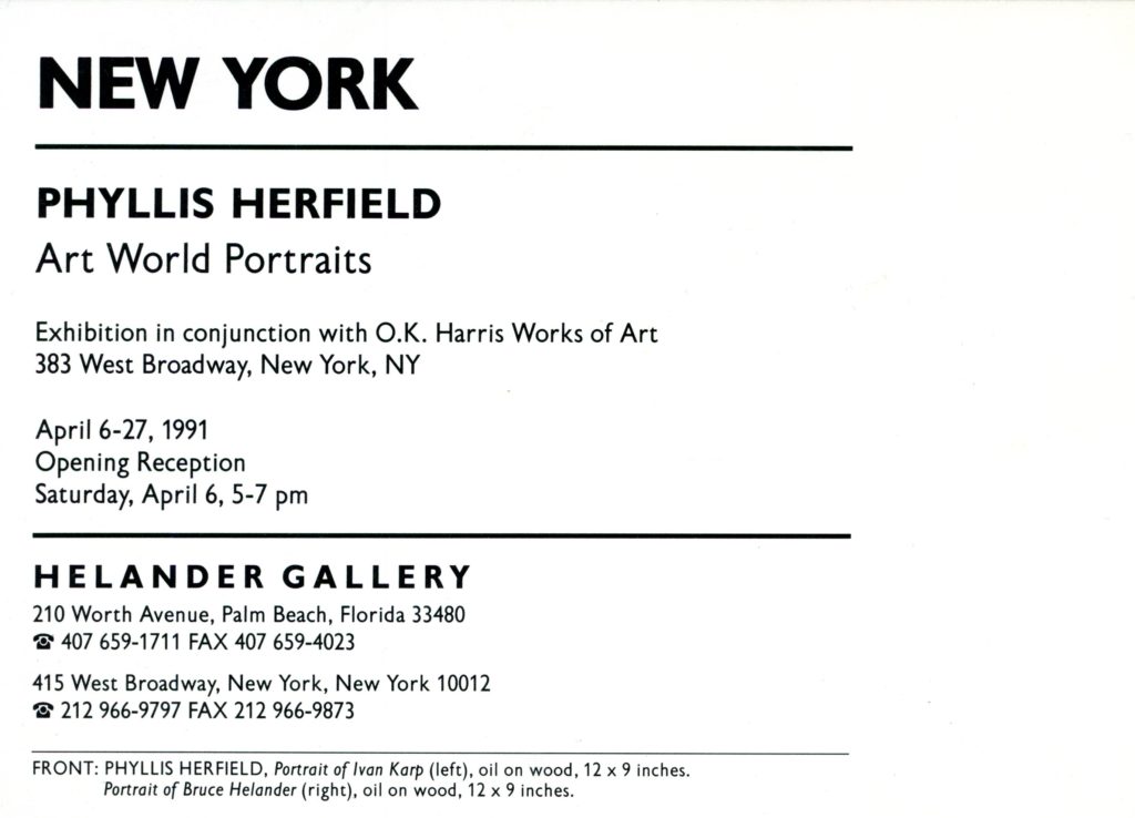 Helander Gallery, Phyllis Herfield, Card, 1991
