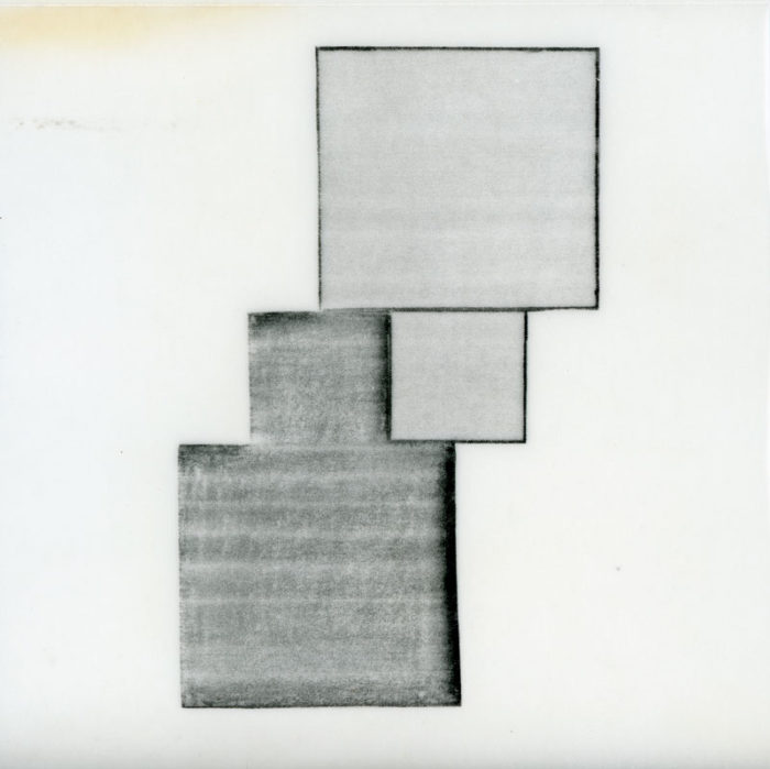 Unique folded card for Mary Heilmann’s exhibition of recent work at Holly Solomon Gallery, 1981 (?). Printed on translucent vellum paper.