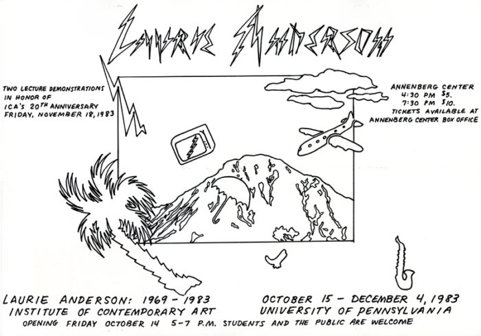 Institute of Contemporary Art (Pennsylvania,) Laurie Anderson, 20th Anniversary, Folded Poster, 1983. This poster has been previously folded and has creasing.