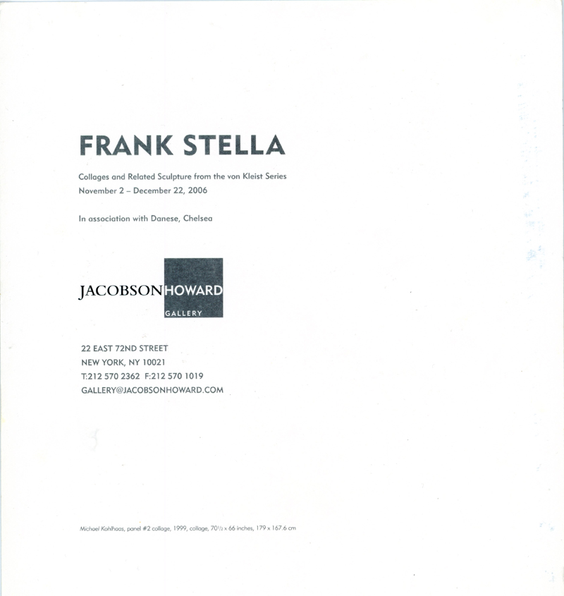 Jacobson Howard Gallery, Frank Stella, Collages and Related Sculpture From The von Kleist Series, Card, 2006