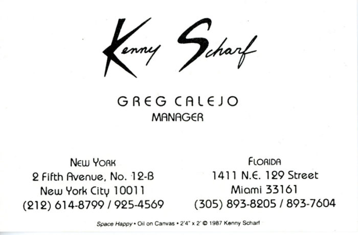 Kenny Scharf, Business Card for his manager Greg Calejo, c. 1987