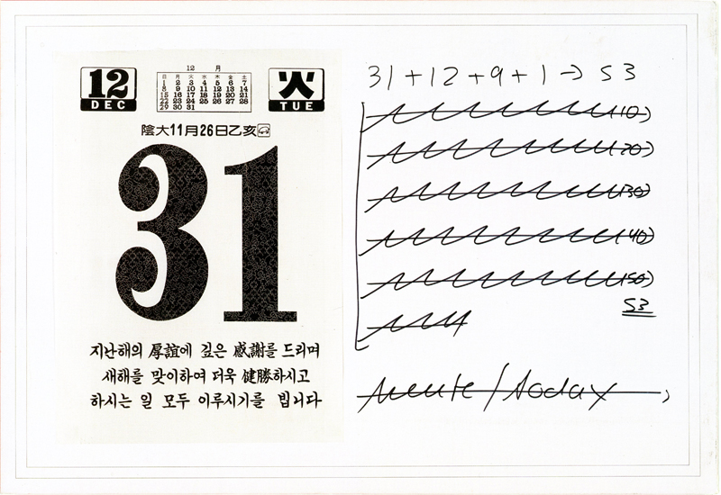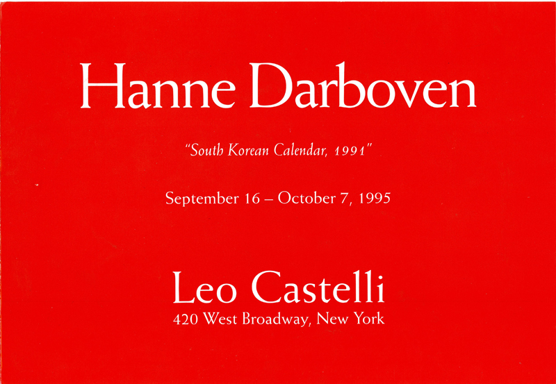 Hanne Darboven, South Korean Calendar 1991, Folded Card, Leo Castelli Gallery, 1995