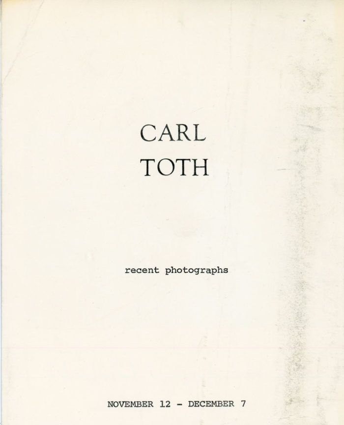 Folded card for Harry Callahan’s exhibition of photographs at LIGHT Gallery, 1974. Back of card features an announcement for Carl Toth’s upcoming exhibition of recent photographs.